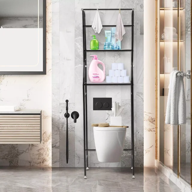 Introducing the ultimate solution to your bathroom clutter – the 3-Tier Metal Over-The-Toilet Storage Shelf. This sleek, space-saving organizer is designed to maximize the unused space above your toilet, turning it into a versatile storage area for towels, toiletries, and decorative items. Crafted with elegance and functionality in mind, this shelf adds a touch of modern simplicity to any bathroom decor.