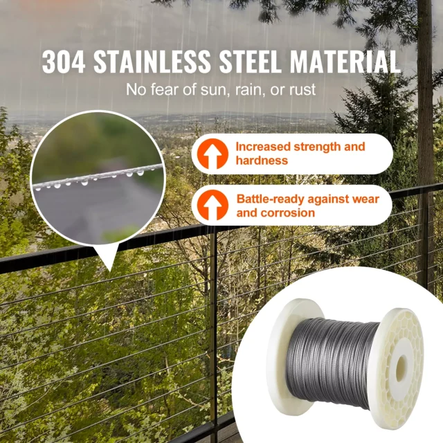 Enhance your outdoor projects with this high-quality 304 Stainless Steel Wire Rope Kit, built to withstand the toughest conditions. Designed for durability and flexibility, this marine-grade cable is ideal for handrails, decking, garden fencing, and clotheslines. Its construction using 304 stainless steel ensures excellent corrosion resistance, making it perfect for both indoor and outdoor use, especially in marine or humid environments. Whether you’re upgrading a deck or adding a stylish handrail, this cable’s strength and durability make it a reliable choice for multiple applications.