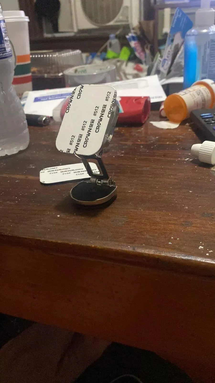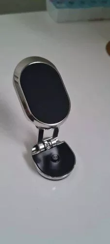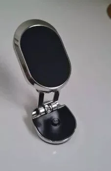 I've repurposed this mount for use on my desk, where it has proven to be quite useful. I like its ability to fold down to a compact size or extend to hold the phone. The magnet is strong enough to securely hold my large phone in place, and the mount has remained stable since day one. It even came with extra magnet plates for use with other electronics and alcohol wipes for surface preparation. It's a reliable magnet mount, and I highly recommend it.