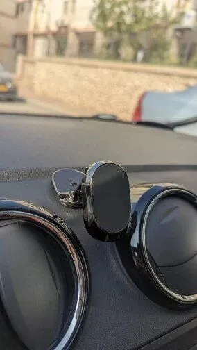 This mount serves its primary function of holding a phone well, but what sets it apart is its narrow form factor, allowing it to fit into narrower spaces. The circular base is not overly wide, but in my opinion, a narrower base would be even better. I appreciate the six magnets providing a strong hold, but to ensure it stays in place, I recommend using a high-quality 3M double-sided tape. It's important to note that it requires a flat surface; if your dashboard has a slight curve, it may not adhere well.