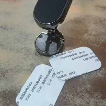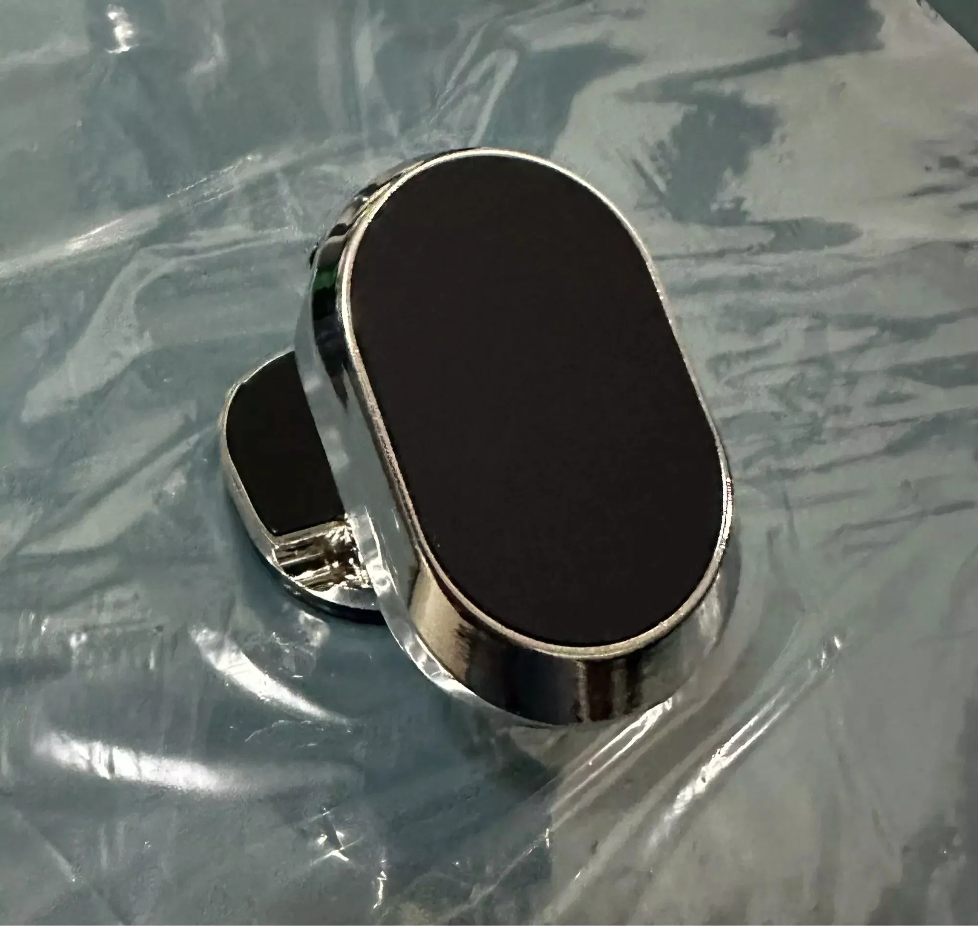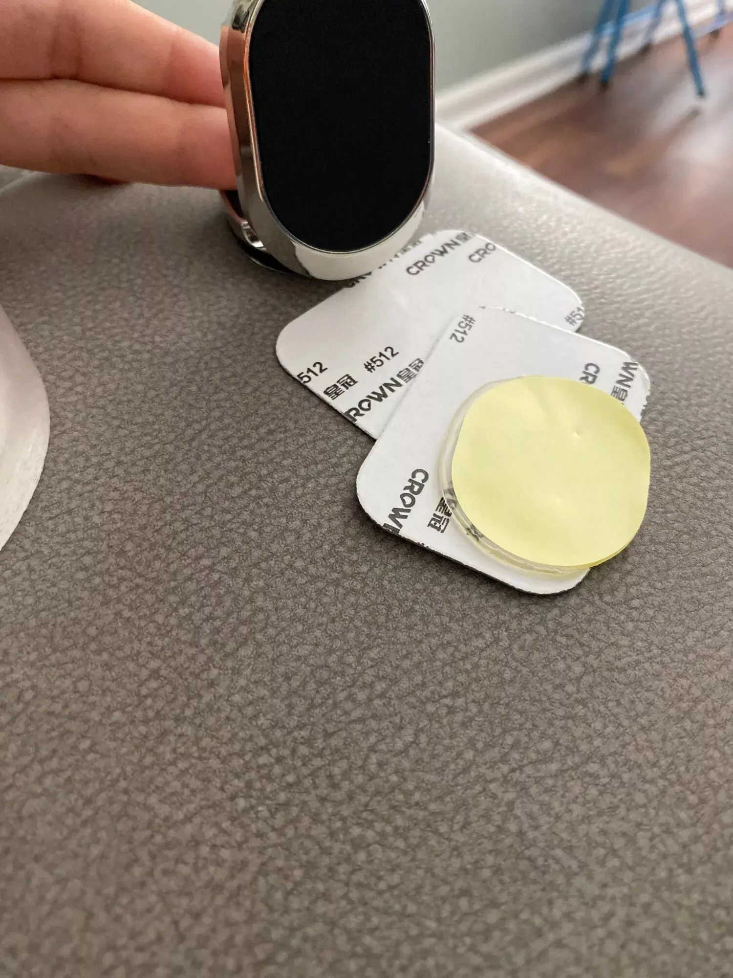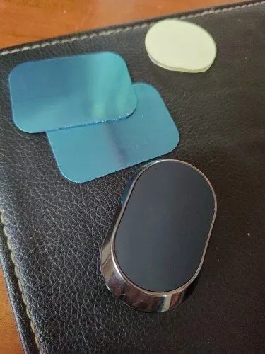 This mount boasts a sleek, low-profile design and is constructed from metal for durability. Its strong magnet securely holds the phone in place, and it can be easily retracted when not in use. While the adhesive it comes with may not be the strongest, it includes additional stick pads for convenience. Overall, it's a well-designed and functional product.