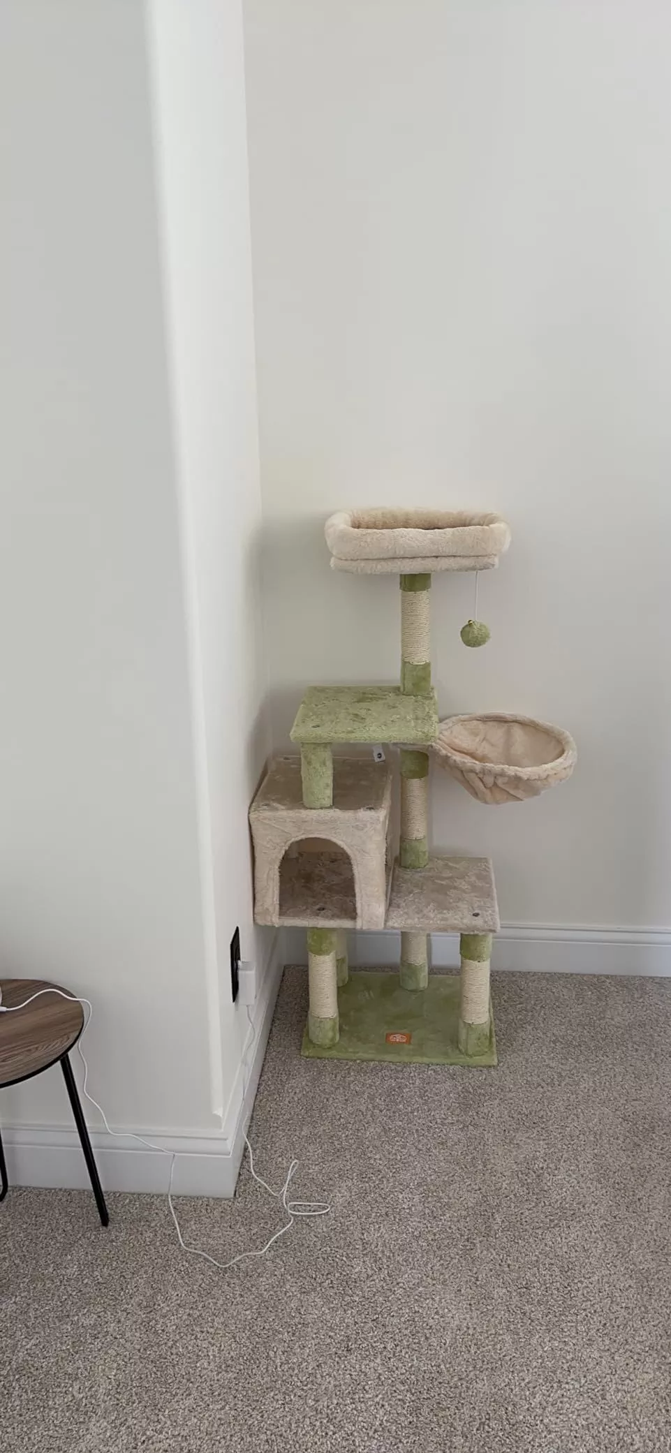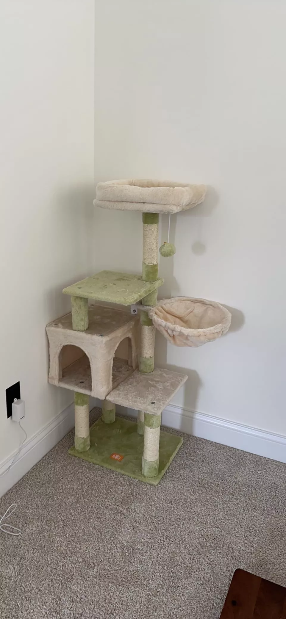 I purchased this when my cat had babies, 4 to be exact. I must say, it has become an instant hit with my feline friends. This cat tower condo not only provides endless entertainment but also offers a super comfy haven for my beloved pet. First and foremost, the level of comfort provided by this cat tree is exceptional. The plush, soft materials used in its construction create a cozy and inviting space for my cat to relax and unwind. The various platforms and perches are generously padded, allowing my furry companion to curl up, stretch out, or observe their surroundings with utmost comfort. It's truly a luxury retreat for cats seeking the perfect spot for a cat nap or a quiet moment of solitude. Aside from the remarkable comfort it offers, it also provides ample opportunities for play and exercise. The integrated toy, dangling from one of the platforms, instantly captivates my cat's attention, encouraging interactive play and physical activity. The inclusion of such an engaging feature keeps my cat entertained for hours on end, preventing boredom and promoting a healthy, active lifestyle. In terms of design, this cat tower condo is well-thought-out. The multi-level structure provides vertical space for cats to explore, jump, and climb. It also helps to save floor space, making it an ideal choice for smaller living areas. The sturdy construction ensures stability and durability, giving me peace of mind knowing that my cat can safely enjoy their elevated sanctuary. Assembly of this was a breeze. The instructions were clear and concise, and all the necessary hardware was included. Within a short time, I had the cat tower set up and ready for my cats to explore. The quality craftsmanship was evident, with attention to detail evident in every aspect. The overall aesthetics of this cat tree are pleasing to the eye. The neutral color scheme seamlessly blends into any home decor, while the sisal-covered scratching posts add a touch of natural appeal. It's a well-designed piece that not only serves its purpose but also enhances the visual appeal of the living space. Considering the features and quality it offers, the condo/tree is reasonably priced. It provides an excellent combination of comfort, playfulness, and durability, making it a valuable investment for any cat owner. The hours of entertainment and relaxation it provides to my furry companion are truly worth every penny. In conclusion, this is a super comfy haven for cats, offering a perfect balance of comfort, playfulness, and style. Its plush materials, inviting design, and integrated toy make it a highly desirable cat tower condo. If you're looking to provide your feline friend with an elevated sanctuary where they can lounge, play, and indulge in ultimate comfort, I wholeheartedly recommend this product. Your cat will thank you for it!