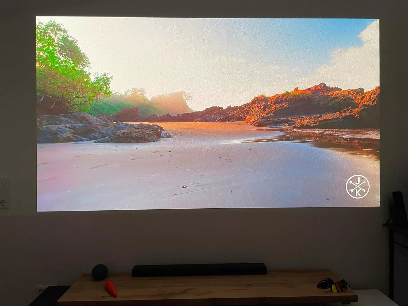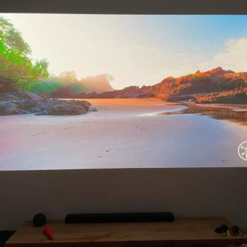This projector is fantastic. The image quality, Harman/Kardon sound, and design are all top-notch. The only minor issue is a light halo if you're not right in front of it, but that's more about the room than the projector.