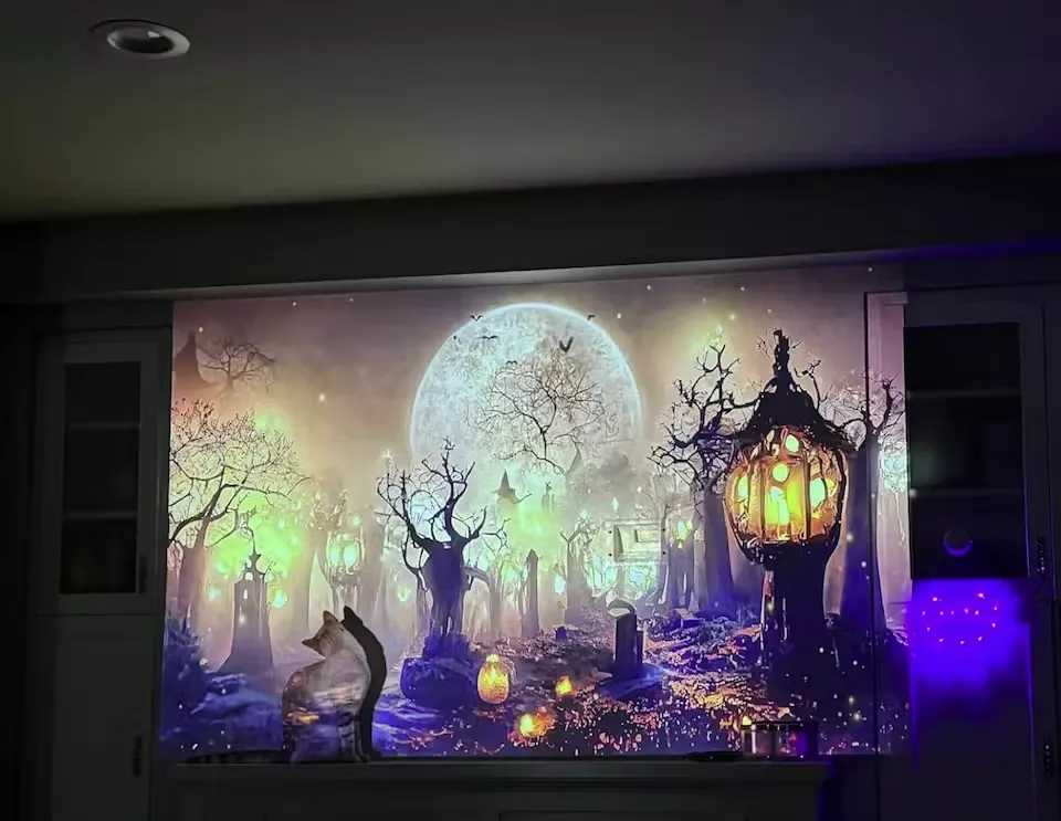 I did a lot of research and most projectors are pricey with no speakers or smart features. This one is a breath of fresh air. It's lightweight, has a huge screen, Harman Kardon speakers, and loads of smart features. Setting it up is a no-brainer, no need for extra screens or calibration. It's like the smartphone revolution for projectors. I'm in love and not looking back.