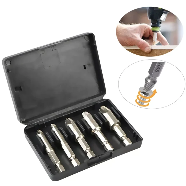 Don’t let a damaged screw or stuck bolt slow you down. This 5-piece Screw and Bolt Extractor Set is your go-to solution for quick, hassle-free extractions of stripped, broken, or painted-over fasteners. Made with high-speed steel (HSS), this set is designed to tackle the toughest extraction jobs with precision and ease. Whether you’re dealing with wood screws, machine screws, or metal bolts, these durable, versatile drill bits make quick work of any damaged fastener.