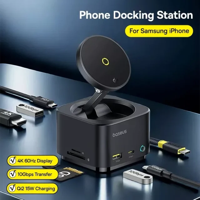This device combines multiple essential functions into a single, easy-to-use hub. With a sleek, space-saving design, it eliminates the need for multiple adapters and cables. Perfect for business professionals, gamers, or content creators, it offers the flexibility to connect various devices and accessories simultaneously. Enjoy 4K clarity on your external display, ultra-fast data transfer, and powerful wireless charging—all from one hub. Whether you’re working remotely, streaming content, or transferring files, this device will enhance your productivity and streamline your workflow.