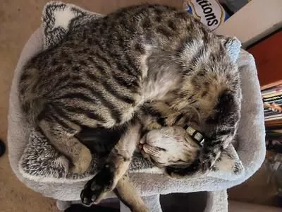 The moment we assembled this delightful piece of kitty architecture at home; our furry friends were instantly drawn towards it like magnets! Its generous size makes sure that everyone gets their fair share of fun while maintaining their personal space. The double condo design is a big hit, providing them with private and cozy spaces to retreat when they need some alone time. Plus, the large perch has become their favorite spot for bird watching! It's sturdy, well-made and looks great in our living room too!