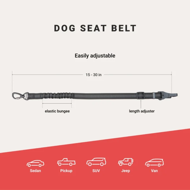 Featuring a highly elastic shock-absorbing bungee, this seat belt safeguards your pet during sudden brakes or falls, reducing the risk of suffocation.