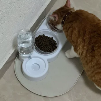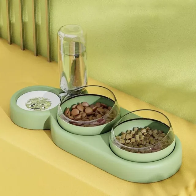 Transform your pet’s dining experience with the Automatic Pet Feeder with Tilted Double Bowls and Water Fountain. This all-in-one feeding solution is designed to cater to the needs of both cats and small dogs, ensuring they receive the nourishment and hydration they need in a convenient and comfortable manner. With a sleek, raised design and thoughtfully engineered features, this pet bowl set is more than just a feeding station—it’s a step towards better pet care.