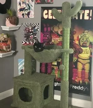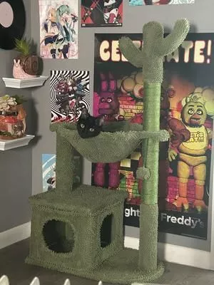 🌵💚 I am absolutely in love with this cactus-themed cat tree! My feline friend has been using it non-stop. It's a great size, not too big but plenty of room for her to climb and play. The hammock is so cute, she loves lounging there during the day while watching birds outside the window. Plus, the scratching post with sisal rope is an added bonus – no more scratched furniture around here! Overall, very sturdy construction and well worth every penny spent.