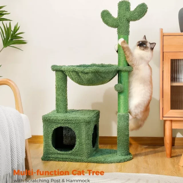This cat tree is more than just a piece of furniture; it’s an all-in-one playground that meets all your cat’s needs. The unique cactus design not only enhances your home’s decor but also provides a functional space where your cat can exercise, relax, and play. The sturdy construction ensures that it will last for years, providing a safe and enjoyable space for your furry friend.