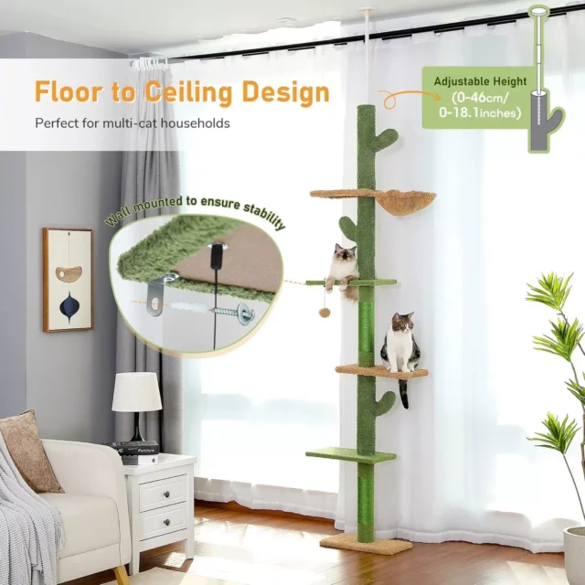 Wow, this cactus cat tree is a real hit our household! It reaches all the way to the ceiling and provides an excellent vantage point for my curious felines. They can't get enough of it!