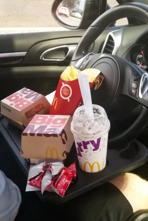 I work 5 days a week in a COVID ICU and have been eating in my vehicle to reduce the risk of spread in the lunchroom or restaurants. Had been struggling with eating in comfort all these months until I stumbled upon an article about interesting gadgets on Amazon. Where have you been?! Slapped it on and immediately in love! No issues with having to turn my steering wheel around, no strong smell, fits my 2018 Jeep Grand Cherokee perfectly. Best COVID purchase ever to provide so much happiness with just a few dollars! Thank you!