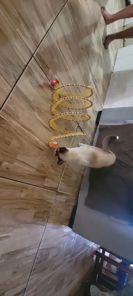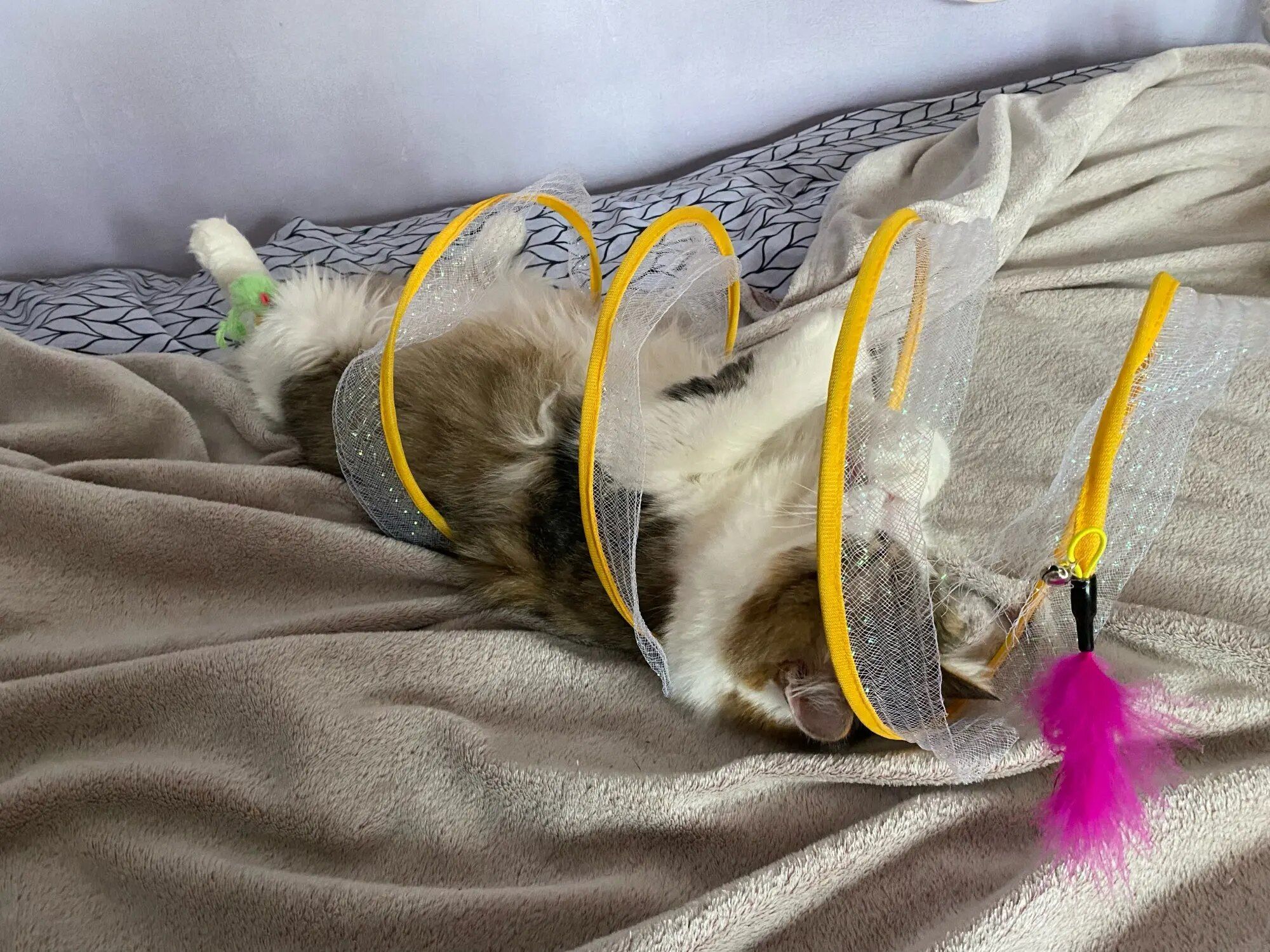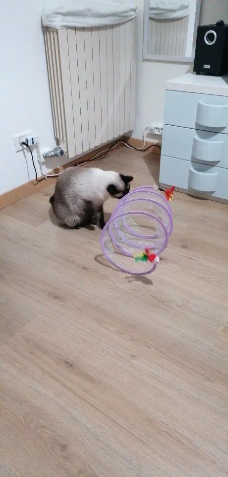 Although my cats were initially hesitant, they eventually warmed up to this toy, particularly enjoying the bell toys on the ends. Now, they use it as intended, running through it with enthusiasm.