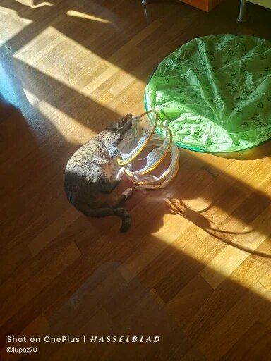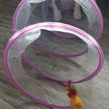 i’m really pleased with this cat tunnel. my cats absolutely love it. the crinkly fabric is a big hit and they enjoy running through it and hiding. it’s well-made and sturdy, and the setup was quick and easy. it’s also lightweight and easy to move around, which is great. the tunnel folds up nicely when not in use, saving space. my cats are more active and playful now. this tunnel has definitely added a lot of fun to their playtime. highly recommend it for anyone with cats.