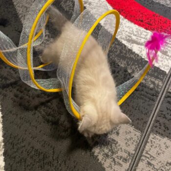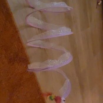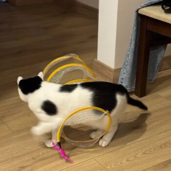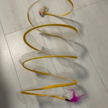 Our kitten likes to play with the toys. Within 1 night she had already got a feather loose.🙈