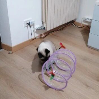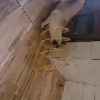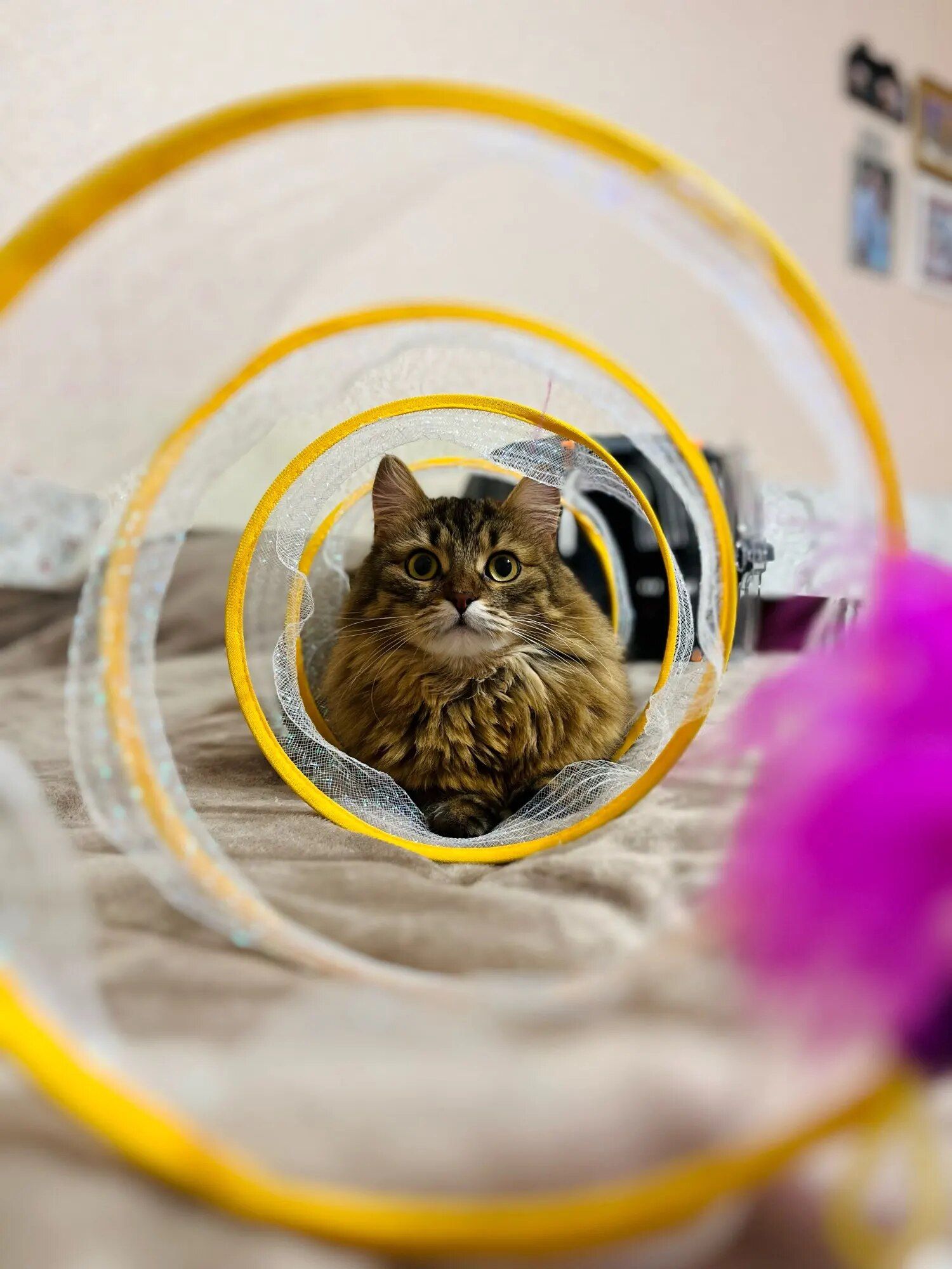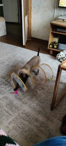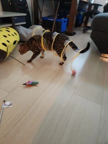 This cat adventure tunnel has been a hit with my cats. they absolutely love running through it and playing hide and seek. the material is sturdy and the crinkly texture adds an extra element of fun. it was easy to set up and is lightweight enough to move around the house. the tunnel also folds up nicely when not in use, making it easy to store. since we got this tunnel, my cats have been more active and entertained. it’s great to see them enjoying themselves so much. the tunnel is spacious enough for them to play comfortably and they love the different entrances. this has been a great addition to their toys and has provided endless hours of fun. i highly recommend this tunnel to other cat owners looking for a durable and entertaining toy for their furry friends.