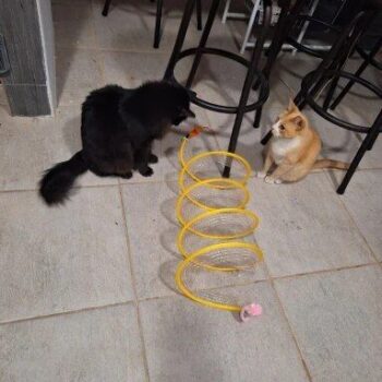 This cat adventure tunnel has been a wonderful purchase. my cats are obsessed with it and spend hours playing in it. they love the crinkly sound and enjoy running through the tunnel and hiding in it. the material is durable and it was very easy to set up. the tunnel is lightweight, making it easy to move around the house to different play areas. it also folds up nicely for storage, which is a big plus. since we got this tunnel, my cats have been more active and entertained. they love the multiple entrances and the spacious interior. it’s great to see them having so much fun and being so playful. this tunnel has been a great addition to their toy collection and has provided endless hours of enjoyment. i’m very happy with this purchase and highly recommend it to other cat owners looking for a fun and durable toy for their furry friends.