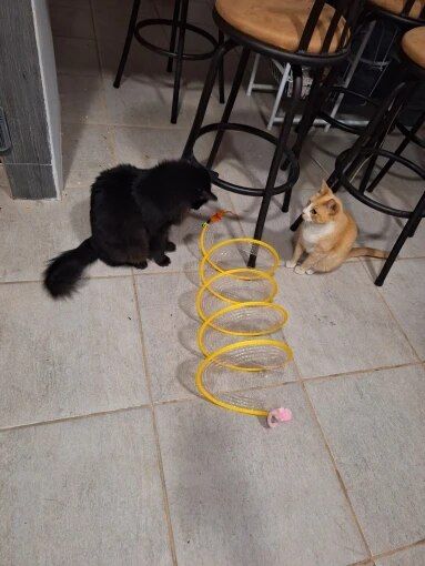 Initially intended for our playful kitten Fiona, this toy ended up being dominated by our more subdued cat, Moosh. Despite Moosh's usual indifference to toys, this one brought out his playful side. We were so impressed that we bought another for Fiona.