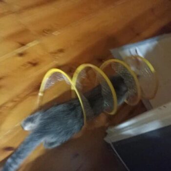 i recently bought the cat adventure tunnel for my cats and it’s been a fantastic addition to their playtime. the tunnel is made of durable material and the crinkly fabric adds an extra layer of fun for them. it was easy to set up and is lightweight, making it easy to move around the house. my cats spend hours running through the tunnel and playing hide and seek with each other. they love the different entrances and the spacious interior. it’s great to see them so active and entertained. the tunnel also folds up nicely for storage, which is very convenient. overall, i’m very happy with this purchase. it’s durable, fun, and keeps my cats entertained for hours. highly recommend it for any cat owner looking to add some excitement to their cats’ playtime.