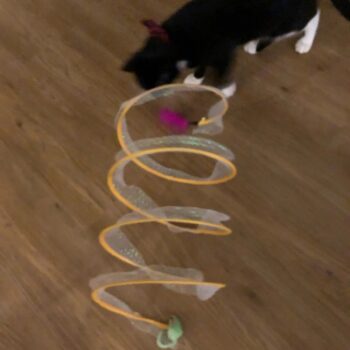 Walter, our cat, has been thoroughly intrigued by this open spiral tunnel, offering him a new source of entertainment.