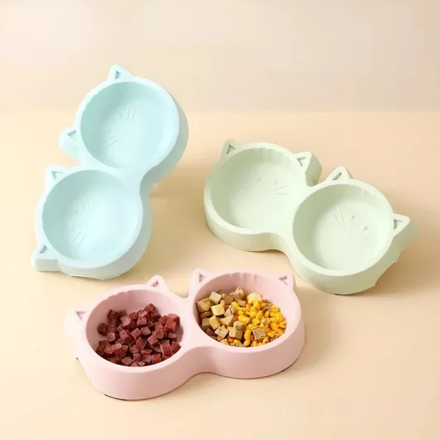 Cat Face Double Bowl Feeder – Eco-friendly Non-Slip Food & Water Bowl for Pets