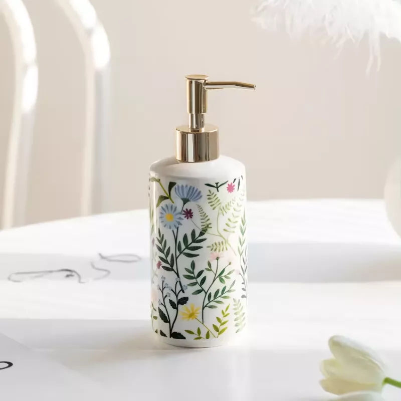 Bring a touch of elegance to your bathroom with our Ceramic Flower Soap Dispenser. This stylish and functional accessory is designed to hold your favorite hand sanitizer, shower gel, shampoo, or moisture lotion. Crafted from high-quality ceramic with a durable ABS pump head, this soap dispenser combines beauty and practicality. The light luxury style and flower design add a sophisticated charm to any bathroom décor.