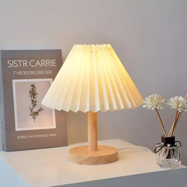 Charming Retro Dimmable Pleated Paper Desk Lamp – Elegant LED Bedroom Night Light