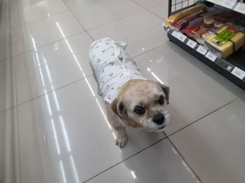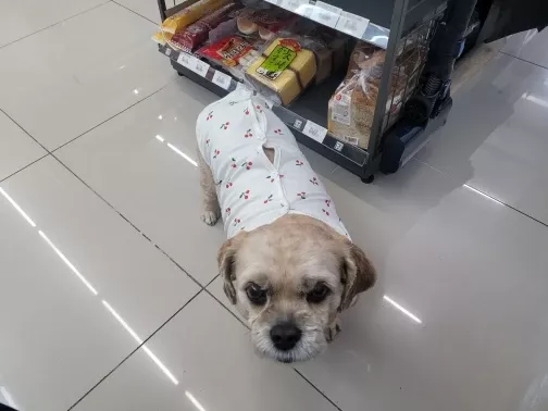 My pup looks adorable in this vest! The cherry print is so cute and the material feels soft against her fur. Love it!