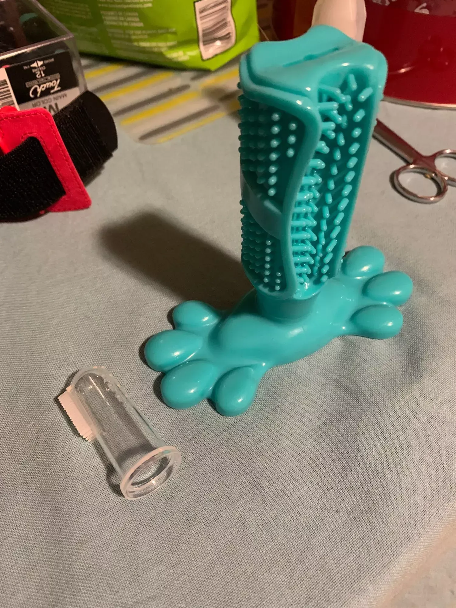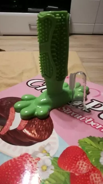 This is a fantastic invention for cleaning a dog's teeth. I just load it with doggy toothpaste every few days.