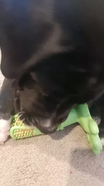 As a pet owner, I'm always on the lookout for products that make life easier for both me and my dog. This toothbrush hit the mark perfectly! It's amazing to see how it turns teeth cleaning into a fun activity for my dog. He's always excited to play with it, and I can rest easy knowing his oral hygiene is being taken care of. The design is smart, making it easy for him to hold and chew, ensuring a thorough clean every time.