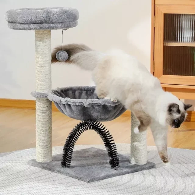 Transform your feline friend’s playtime with our Compact Cat Tree Tower—a delightful playground designed for endless fun and comfort. This multi-functional cat tree features everything your cat needs to stay active, entertained, and cozy. From the plush hammock to the durable scratching posts, every component of this tower is crafted with your kitty’s happiness in mind.