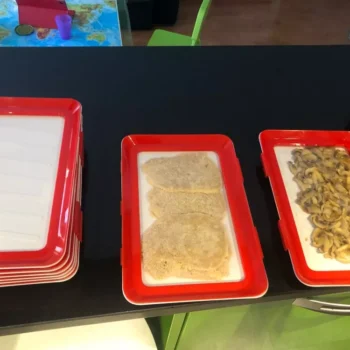 I had been tempted by advertisements for these food preservation trays for a while and finally took the plunge. I think they are great! You can put an entire lunch in them or leftovers and they are much more compact than ziploc containers. The clear cover is stretchy so it can accommodate things with a bit of depth like a sandwich or a banana. They are neat because you can put your lunch in them and they take up about the same amount of space as a laptop in your bag. It slides easily in between your books. In the fridge, they nest together well. Instead of layering leftovers between wax paper, I can divide them up in separate trays and stack them. So far they wash well and return to their original shape after using them. I’m glad I tried them! I will be buying a couple more.