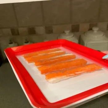 Put frozen fish in and sealed it. Next day no fishy smell in my fridge. Fish was fresh looking not and ugly smell left behind. I'd buy it again. But the tray could be bigger anyway
