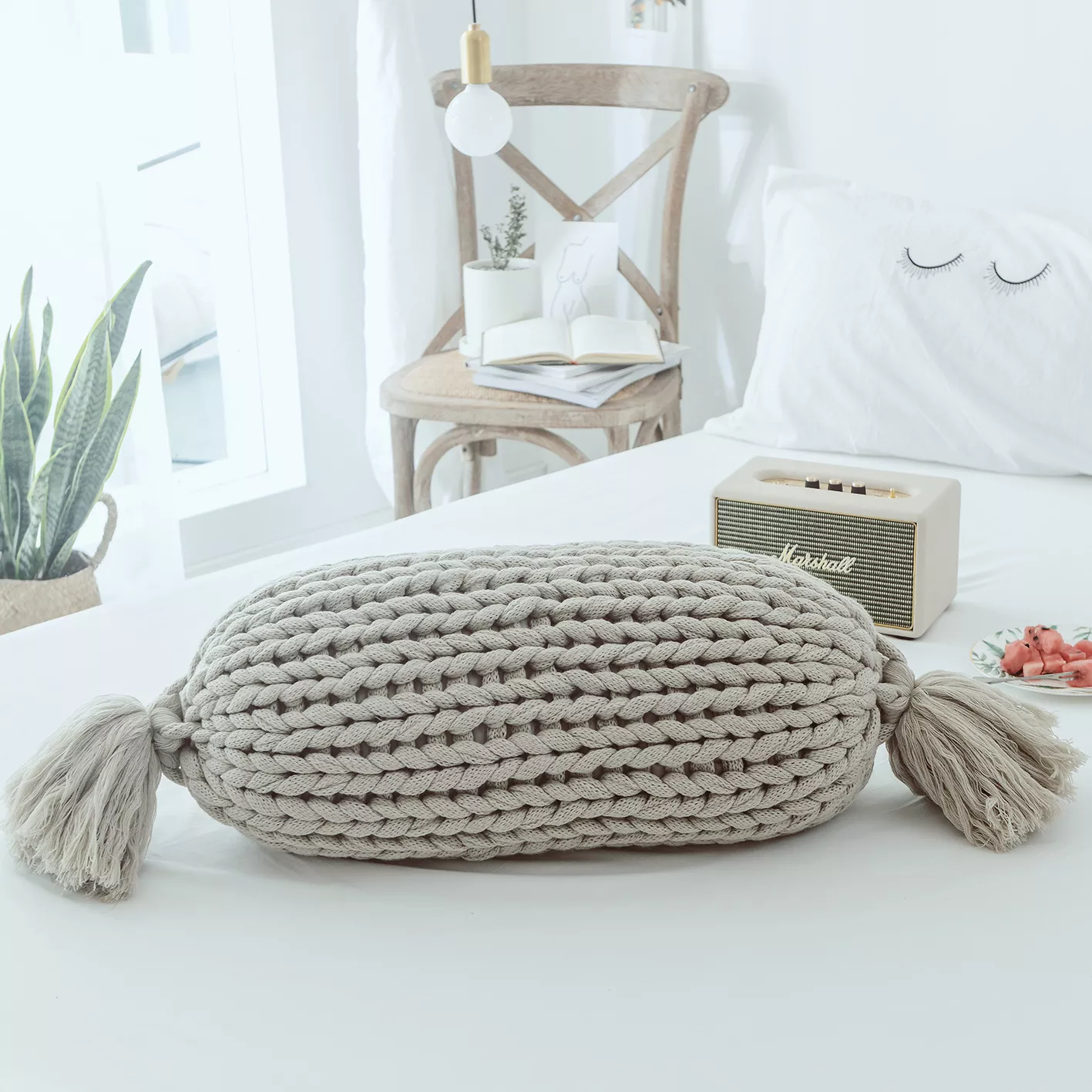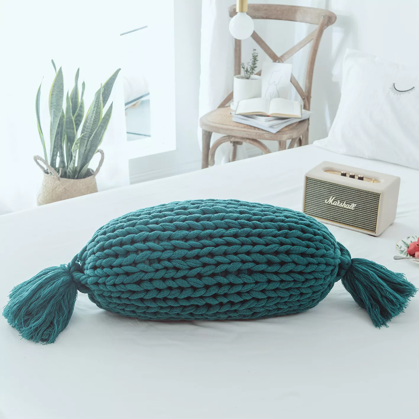 Bring a touch of whimsy and comfort to your home with the Cute Candy Shape Chunky Knit Pillow. This delightful decorative throw pillow is designed to add a playful charm to any sofa, bed, or floor space. Its unique candy shape and kawaii tassel design make it an eye-catching addition to your décor, perfect for creating a cozy and inviting atmosphere.