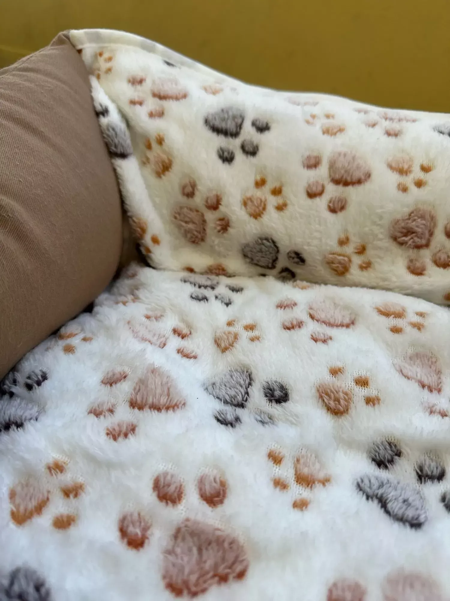 Charming Design: Adorned with a delightful paw print pattern, this blanket isn’t just comfortable; it’s also a cute addition to your home decor. Let your pet rest in style!