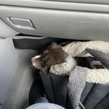 Our dog carrier adapts to any car seat with ease. It includes an adjustable strap for secure fastening and a long handle for additional stability on the headrest.