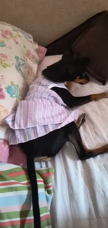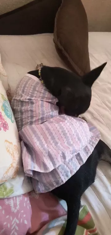 🐾❤️ My little fur baby looks so adorable in her new princess! The fabric is soft and comfy, not itchy like some other dog clothes we've tried. Plus, the pink color really pops against her black fur. She's definitely the belle of the dog park now! 😍