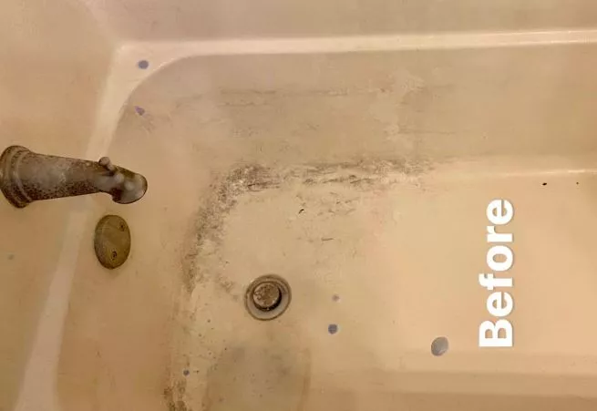 This product works great! It cleaned my super old tub that has lost most of its finish. This was even cleaned just using Mr. Clean. Not even specialized soap scum/mildew cleaner. Although I'd like to have protective goggles included - not everyone has them at home.