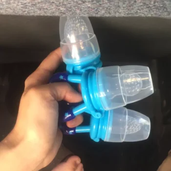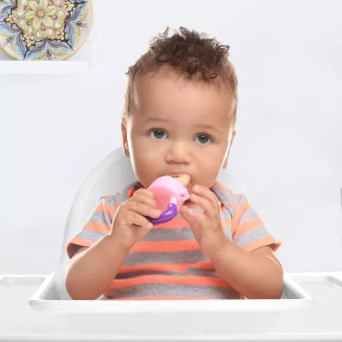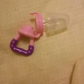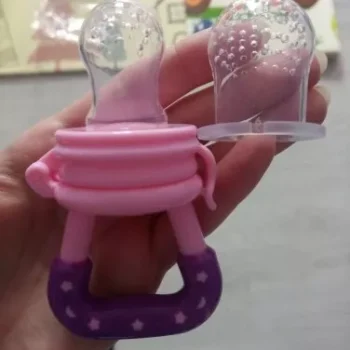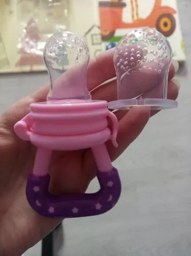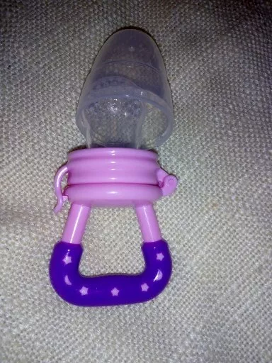So I saw the mesh screen feeders & thought that would be neat until I wondered how they'd be cleaned... Someone had given me one as their little one out grew the need for it, and as I suspected, it was yucky! I threw it out & went on the hunt for something better. I came across these silicone fruit feeders & I loved them as much as our little one did! There were different sizes (and the nipple parts are interchangeable so you can stick with a favorite color if you'd like) and you can make sure the feeders actually get cleaned! It might be a tad tricky to get into the smaller size without brushes & such, but it's well worth it. I'm sure that pending the foods you put into the nipples, it may change the color of the nipples. We noticed that over a few uses the size we favored had a yellowish tint to it. Really these feeders were just right for us. Peace of mind for us & our increasingly independent little one got to eat lots of yummy foods on his own!