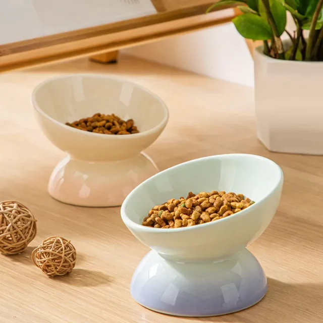 Make every meal a delight for your furry friend with the Gradient Ceramic Cat Bowl, designed with both style and functionality in mind. This beautifully crafted ceramic bowl features a gradient design that adds a touch of elegance to your home while ensuring your pet enjoys a comfortable and healthy eating experience. Whether you have a cat, small dog, or puppy, this raised and tilted bowl is perfect for reducing neck strain and promoting better digestion.
