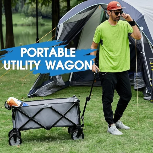 This versatile wagon is ideal for a wide variety of settings, from camping trips to grocery runs. Its durable, all-terrain wheels make it perfect for navigating through dirt paths, grass, sand, and pavement, so you can take it wherever you need. The sturdy frame and high-capacity design make it ideal for carrying heavy gear, whether you’re setting up a campsite, transporting garden tools, or even organizing a family picnic. The collapsible design means it’s quick to pack up and easy to store in your trunk, ready for any adventure.