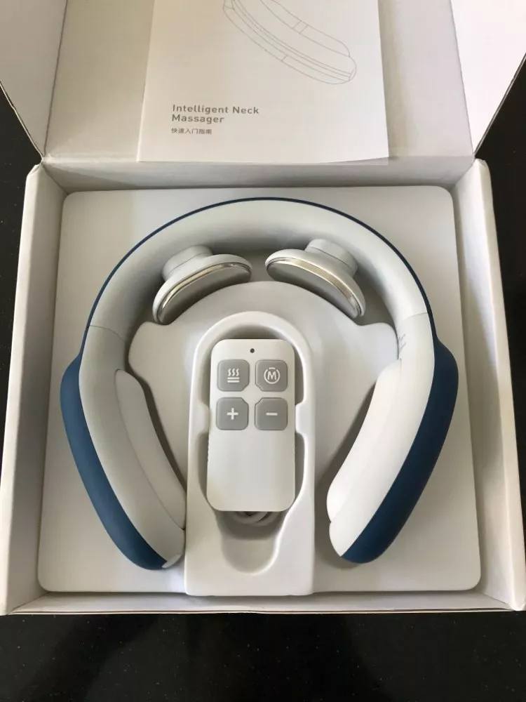 I though I received a broken product. However, I just misused it. First of all, I need to gently wet my neck area before putting on the massager. Then, push the start button. I feel comfortable to use this neck massager, and it feels like electricity flows through my neck, relaxing my neck muscles. This neck massager has a U-shaped design, which can fit almost everyone’s neck. And come with a remote that can control 15 different power levels and 3 different massage models. Most important, it comes with a heating mode. I like it white color. I like it light. I like it comes with soft cushion. I like it easy to use. I like it can relief my neck pain. The overall quality is good. I really like it.