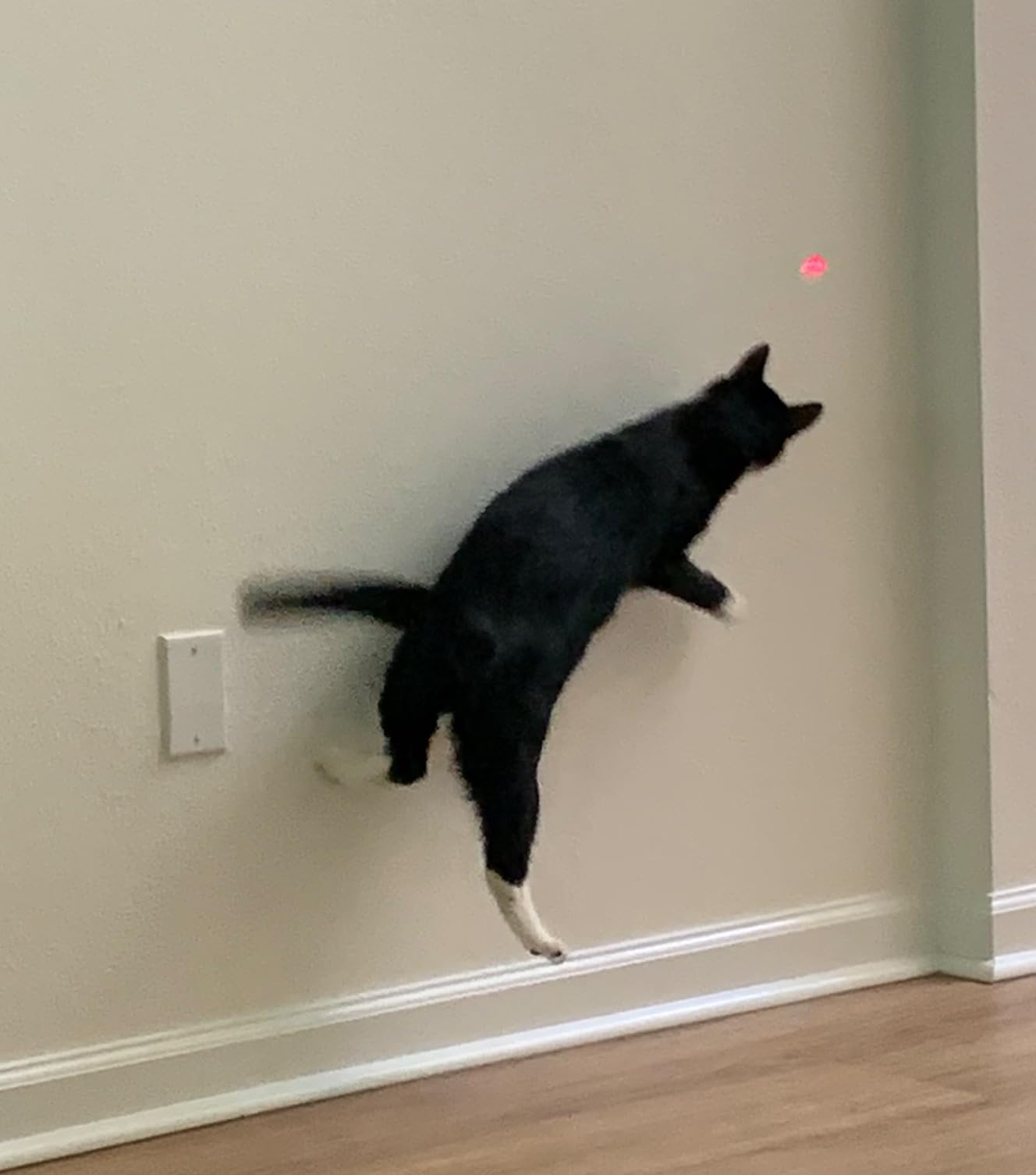 Our kitty used to be quite lazy but not anymore thanks to this wonderful gadget! She can't resist chasing after the light - it provides great mental and physical stimulation for her.