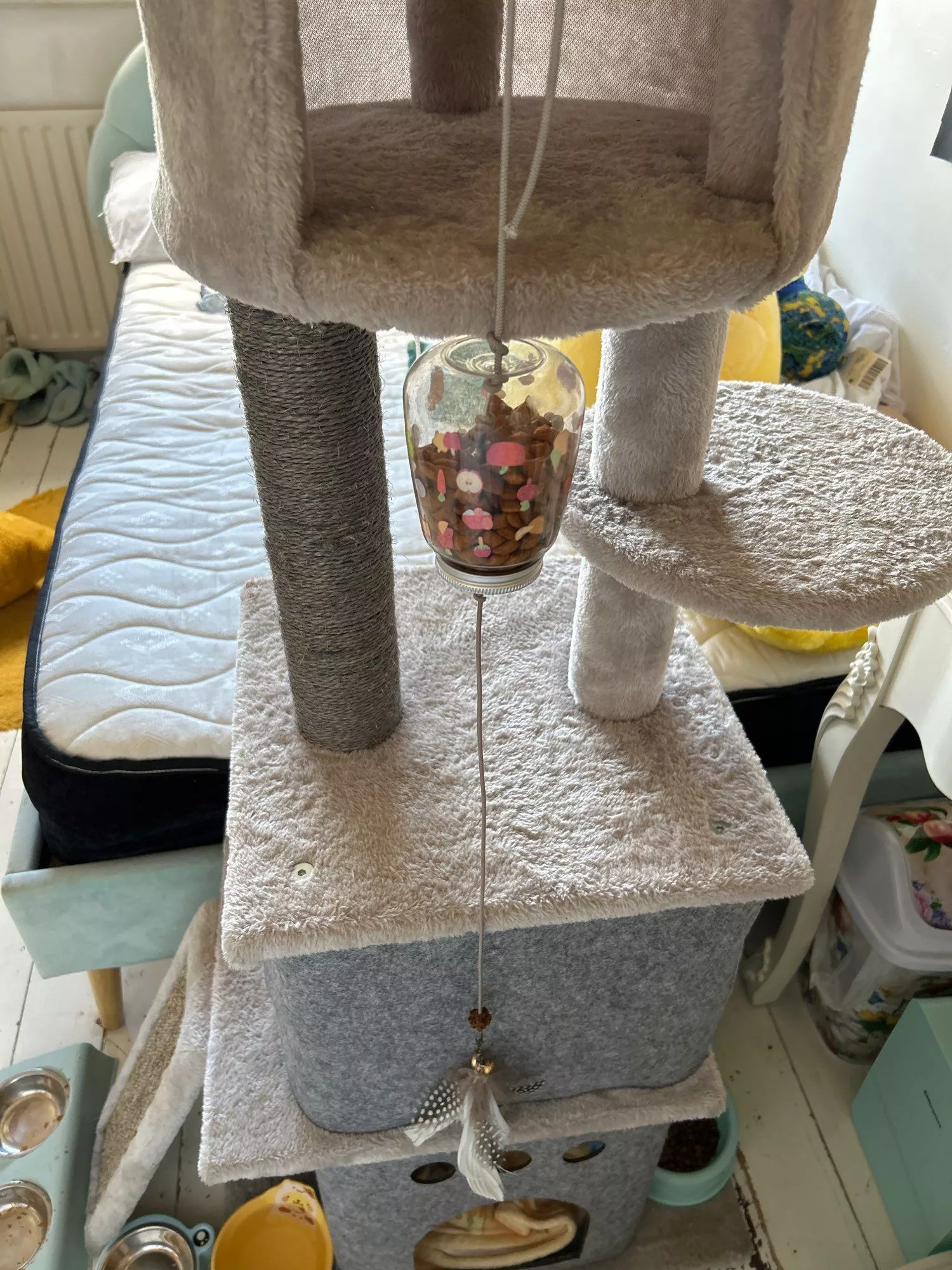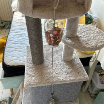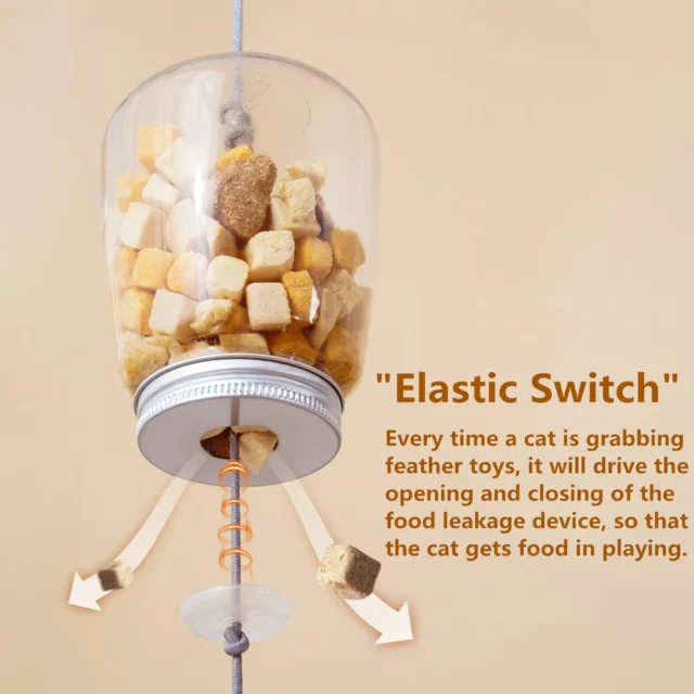 Crafted with your cat’s needs in mind, this toy offers a range of features that make it a perfect addition to your home. The combination of a feather toy, bell, and food dispenser creates a multi-sensory experience that stimulates your cat’s hunting instincts while encouraging healthy eating habits.