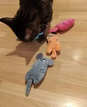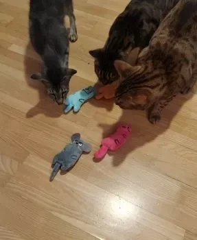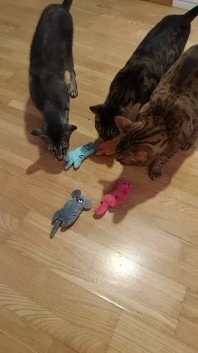 When I first saw this product online, I thought why not give it a try? My kittens love them some new toys after all! And boy am I glad about taking that decision because ever since we got home that tiny fluffy thing; there's no looking back. The gang definitely approves!