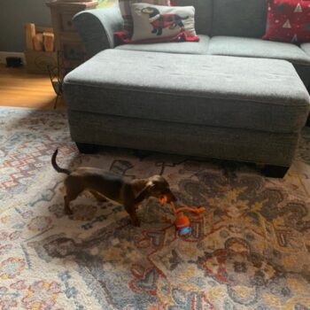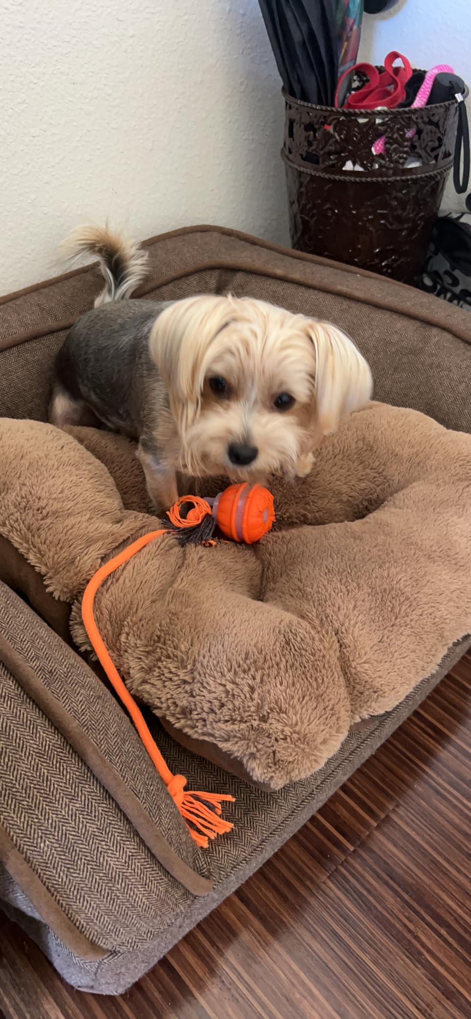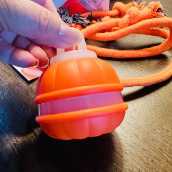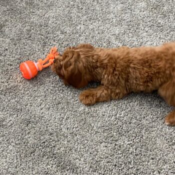 A must-have for any small dog owner. This rolling ball provides endless fun.