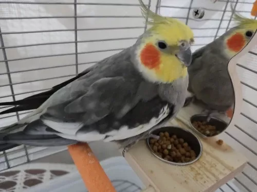 i bought this toy for my parrot, and it has quickly become one of his favorite things in the cage. he loves looking at his reflection in the mirror, and it’s so funny to watch him chirp and interact with his “friend.” the feeder cups are a fantastic addition, as i can place snacks or small toys inside for him to find. it’s been a great way to keep him entertained, especially when i’m not around. the toy itself is sturdy and was easy to attach to his cage. it hasn’t fallen or shifted, even with all his playful activity. the bright colors are fun, and they brighten up his space as well. i also appreciate how easy it is to clean—just a quick wipe, and it’s good to go. my bird spends hours playing with it every day, and i’ve noticed that he’s much more engaged and less bored. overall, this has been a fantastic purchase, and i’m really happy with how much joy it’s brought him. it’s the perfect mix of entertainment and practicality, and i highly recommend it to anyone with a bird who enjoys toys that keep them mentally stimulated.