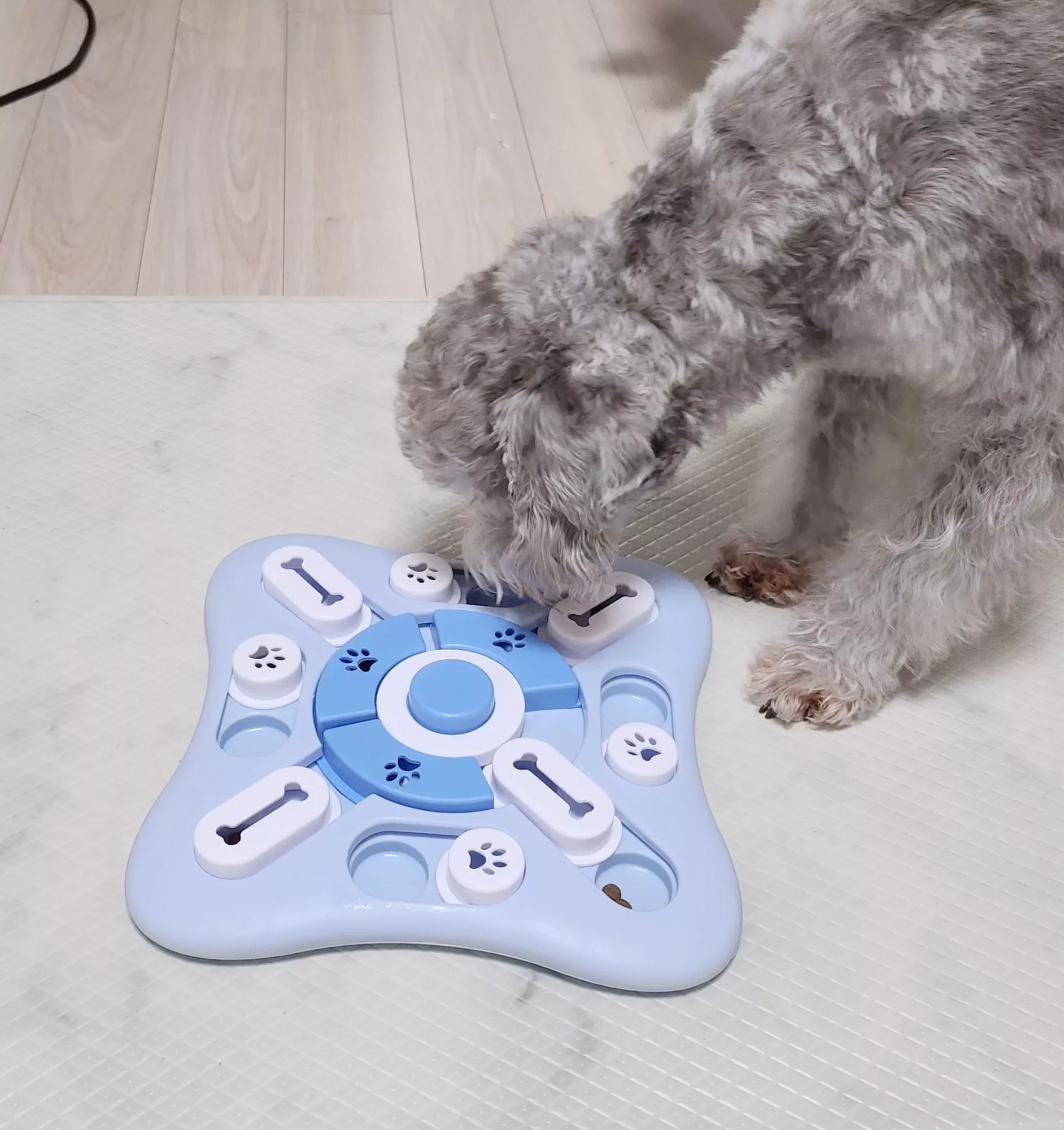 What makes our toy special? It’s not just a treat dispenser – it’s a memory training educational toy that keeps your pup’s brain engaged and active. With a sounding device to grab your pet’s attention and a non-slip base for stability, this toy is designed with both fun and functionality in mind. Plus, it’s made with durable, non-toxic materials, so you can trust it’ll withstand even the most enthusiastic play sessions.