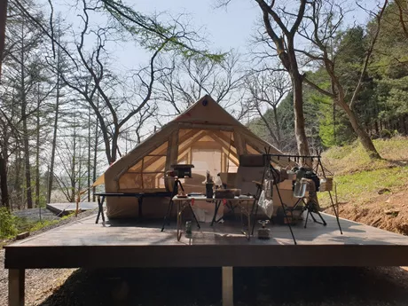 The tent is well-designed, offering a spacious interior without any wind issues. Initially, there is a slight smell from the materials, which I expect will fade after a few days. Although I inflated it slightly less than what the pressure gauge recommended out of caution, it's still very sturdy. I plan to buy a repair kit just in case, despite its high cost, because the convenience it offers is unparalleled.